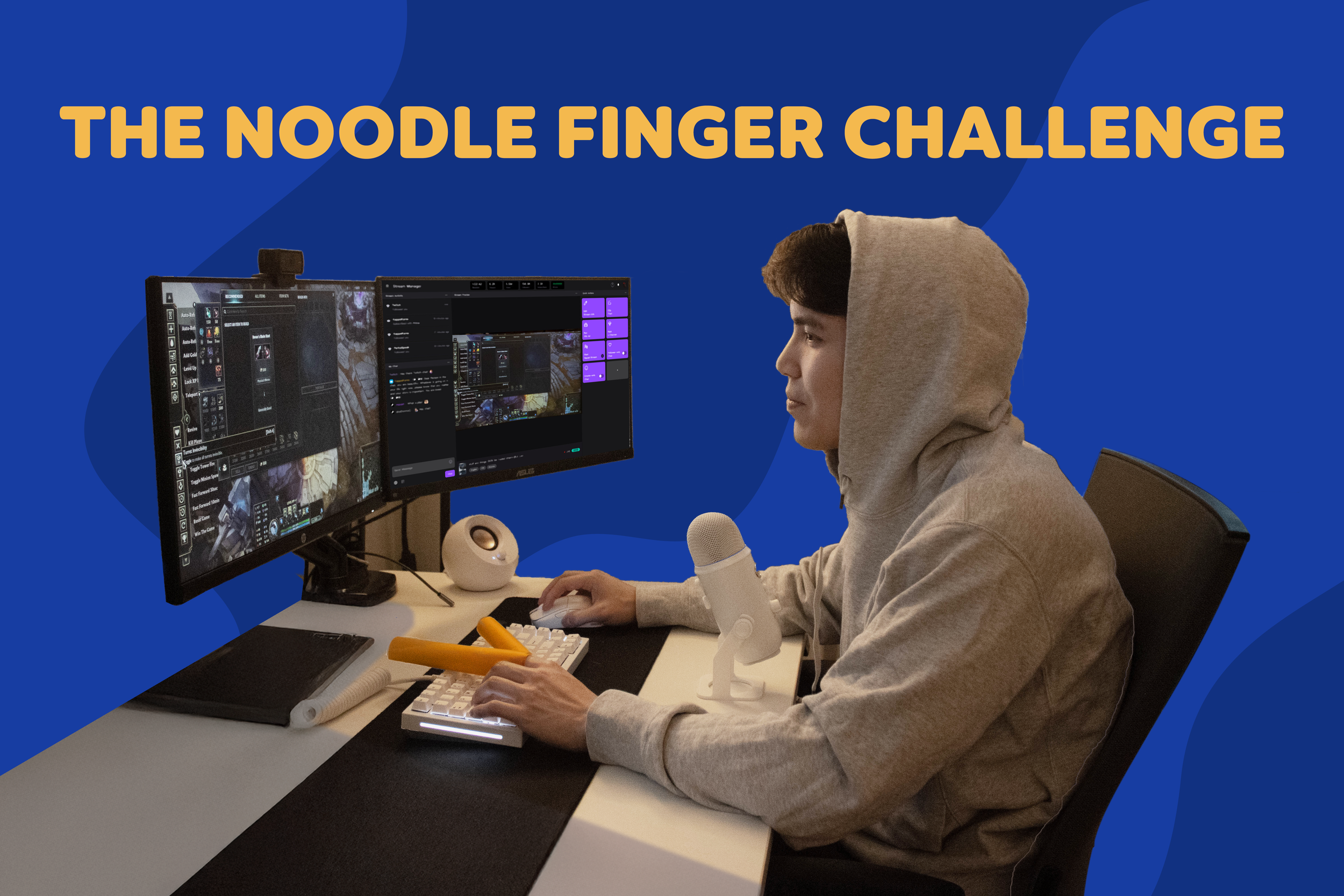 We sent a Wacky Means Winning Kit to streamers, including Kraft-yellow LED lights, KMC Big cups, and our Wacky Wigglers—pasta noodles, for your fingers.