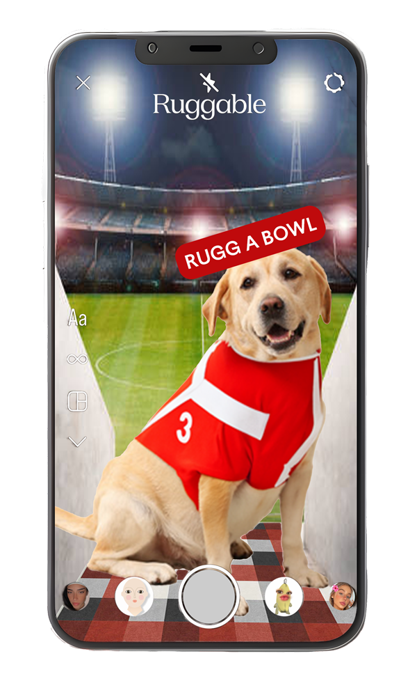 Turn your pet into the ultimate Rugg A Bowl competitor with a custom AR filter